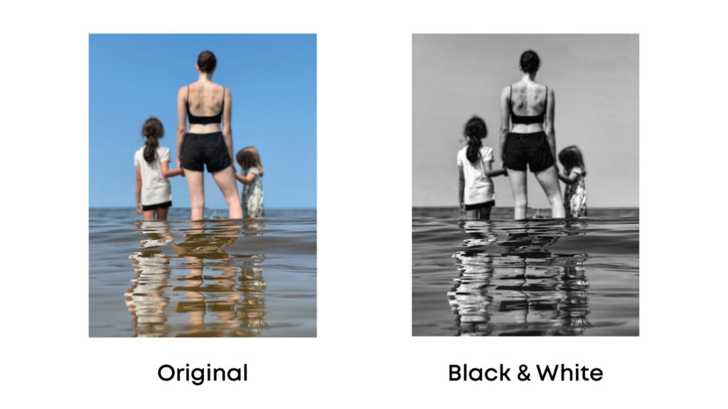 Black & White - When black and white photos are professionally edited, they should use mid-contrast. Using mid-contrast in black and white photo’s preserves details; by using a traditional black and white photo filter, you may lose detail. This look is easy to achieve, but you may need to adjust the sharpness, contrast, blacks and whites. Black and white photos remove the distraction of color and provide depth; allowing the viewer to focus on the main subjects of the photo. In addition, the warm black and white editing style can be used for casual portraits and landscapes, and is a brighter alternative to traditional black and white photos.