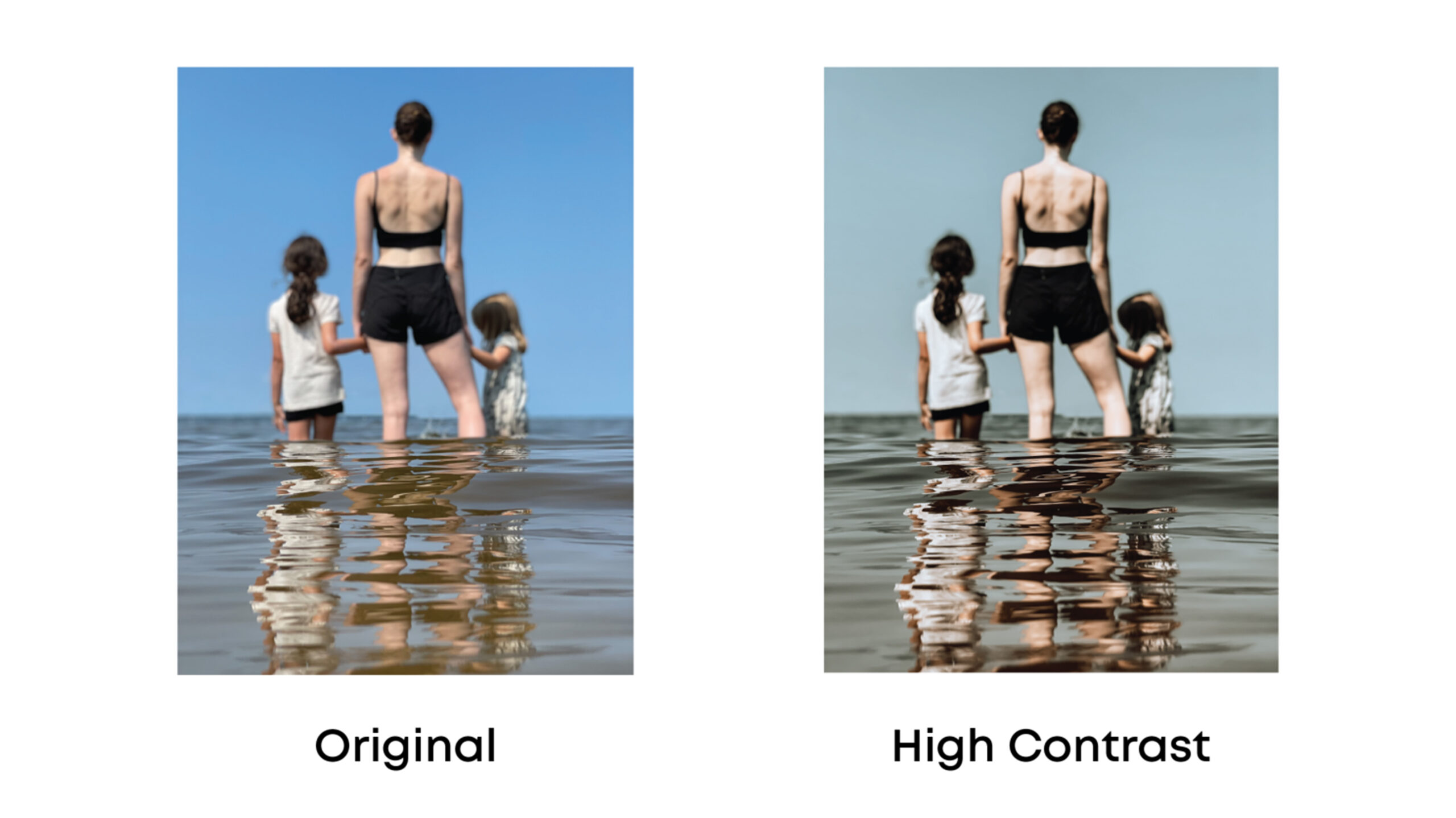 High Contrast - High contrast editing creates a dramatic and edgy appearance. High contrast is when there are two highly contrasted areas – Duh! Right? This editing style primarily concerns itself to the light and dark areas in the photo. Meaning, the light and dark areas in your photo will be more dramatic. High contrast uses preexisting shadows and darkness to create contrast against the color in the photo. This editing style creates clarity using shadows and tones and is great to use when there is a subject or element that you want to draw attention to in your photo.